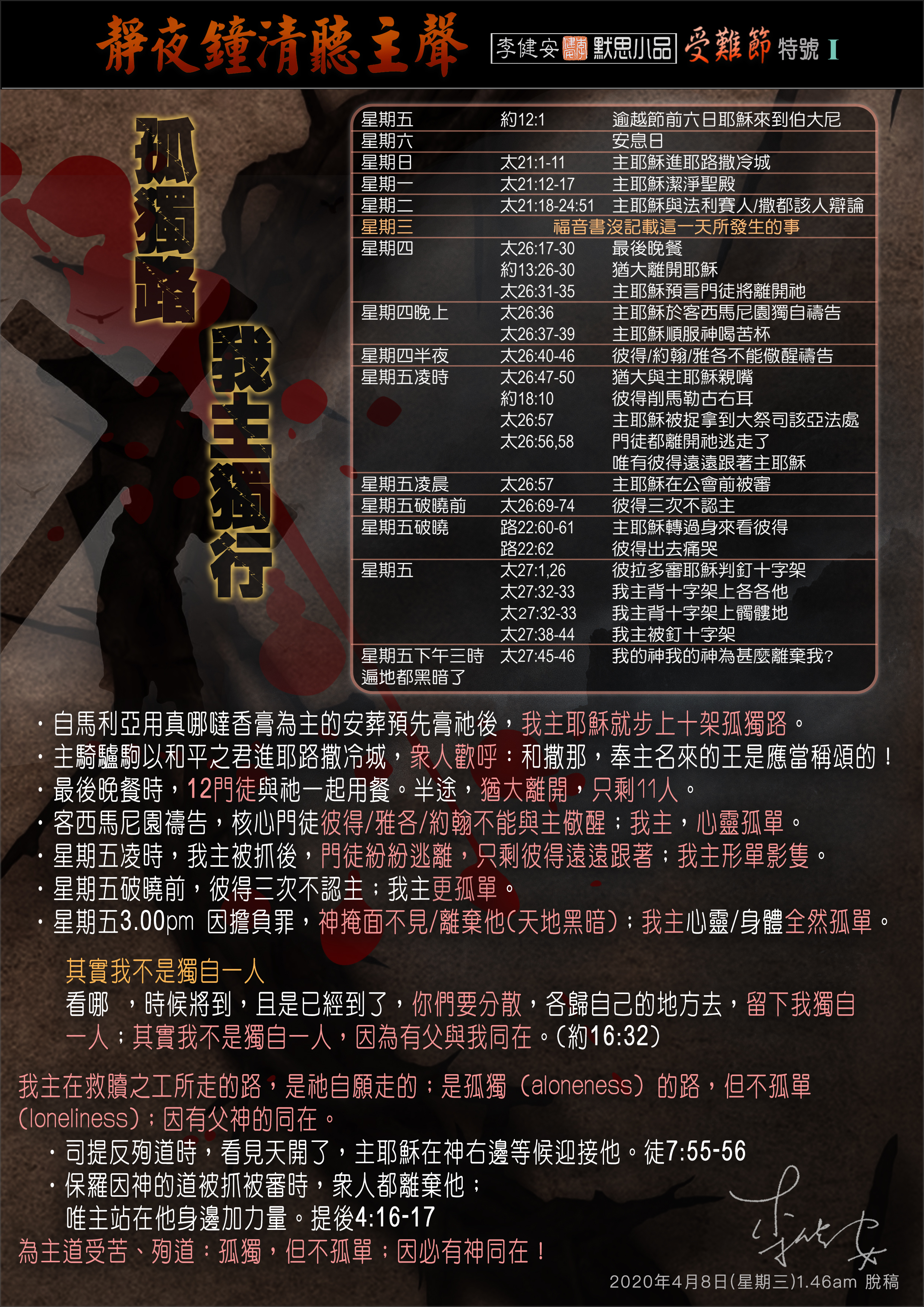 #李健安牧師默思小品 #李健安 #孤獨路我主獨行 #受難節 #逾越節 #歸正福音事工 #REM Gospel Culture Centre