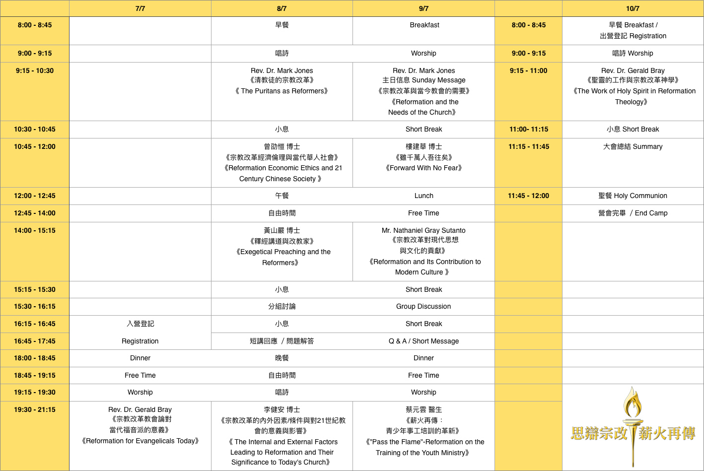 《宗教改革的內外因素/條件與對21世紀教會的意義與影響》 7月8日(晚) |
